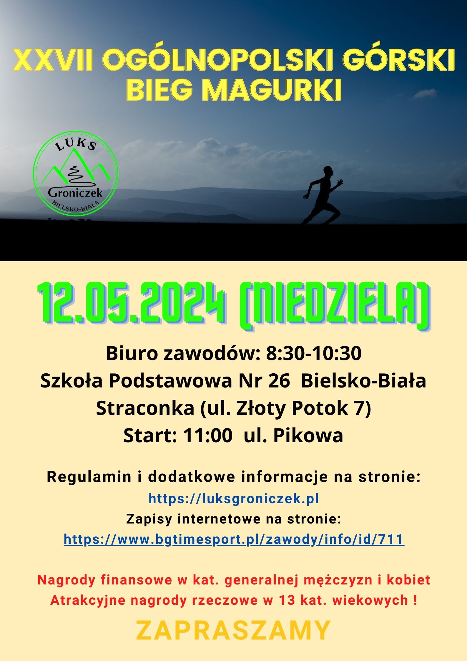 Na niedzielę 12 maja 2024 roku zaplanowana została kolejna edycja popularnego w regionie wydarzenia biegowego – XXVII Ogólnopolskiego Górskiego Biegu Magurki.
