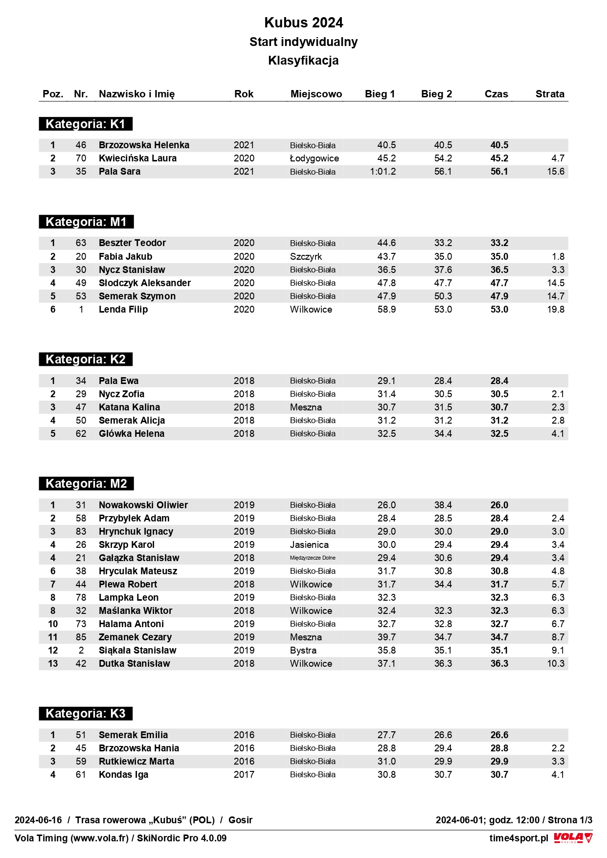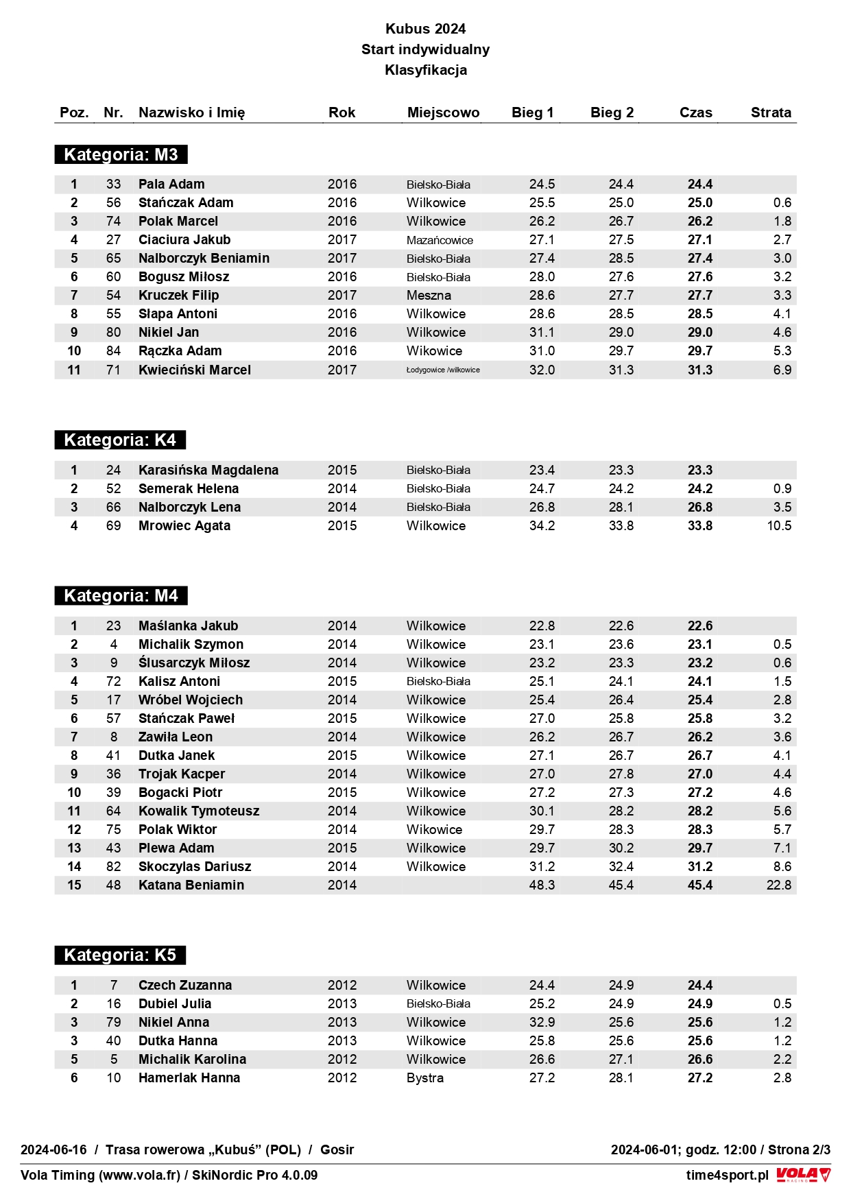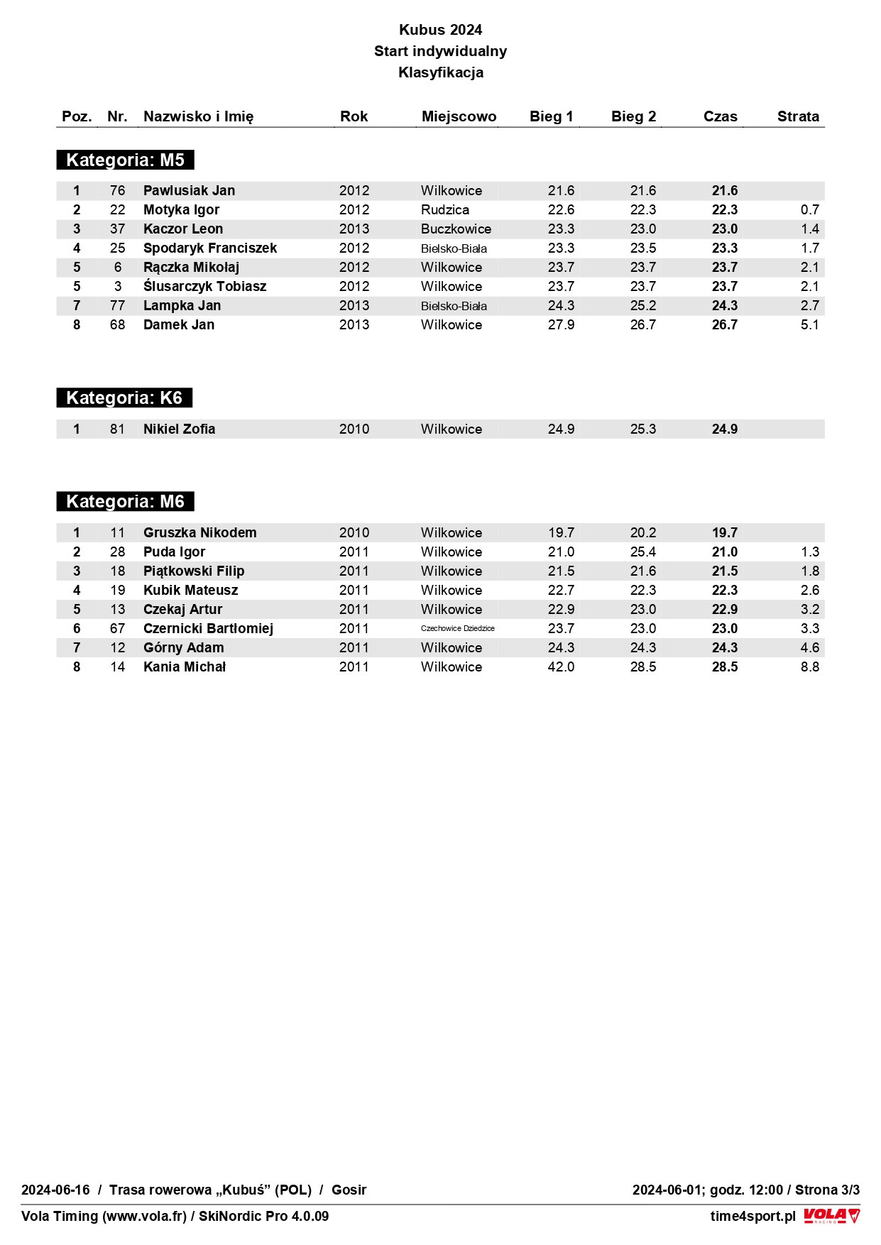 Swoje święto dzieci od rocznika 2010 po kolejne młodsze spędziły przyjemnie i aktywnie, czemu sprzyjała też słoneczna aura. Wydarzenie w Wilkowicach obejmowało zarówno przejazdy treningowe, jak i te z mierzonym czasem na trasie długości około 100 metrów. W następstwie rywalizacji wręczono po ich zakończeniu pamiątkowe medale, upominki rzeczowe oraz nagrody ufundowane przez sponsora głównego firmę Prosperplast dla tych, którzy poradzili sobie w poszczególnych kategoriach wiekowych najlepiej. A byli to: Helenka Brzozowska (rocznik 2021 - K1), Teodor Beszter (2020 - M1), Ewa Pala (2018 - K2), Oliwier Nowakowski (2019 - M2), Emilia Semerak (2016 - K3), Adam Pala (2016 - M3), Magdalena Karasińska (2015 - K4), Jakub Maślanka (2014 - M4), Zuzanna Czech (2012 - K5), Jan Pawlusiak (2012 - M5), Zofia Nikiel (2010 - K6), Nikodem Gruszka (2010 - M6). KOMPLET WYNIKÓW POWYŻEJ
