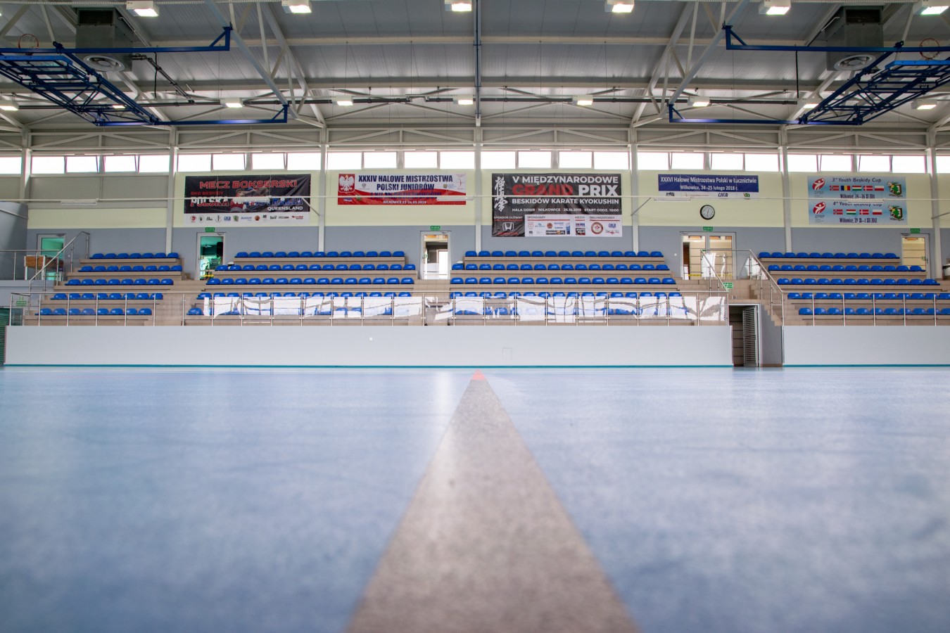 Hala sportowa mieści się przy ulicy Szkolnej 8A w Wilkowicach. Obiekt tworzy parkiet do gry w różnych dyscyplinach (40 x 20 m) wraz zapleczem szatniowo-sanitarnym (5 pomieszczeń) i trybunami dla 296 osób. W skład kompleksu wchodzą również pomieszczenia biurowe, zaplecze techniczne obiektu, sala konferencyjna oraz sauna. Obiekt gości na co dzień najmłodszych mieszkańców gminy i regionu, korzystali z niego również przedstawiciele wielu dyscyplin sportowych podczas przygotowań i zawodów sportowych, w tym m.in. męska reprezentacja w piłce ręcznej, której ówczesnym szkoleniowcem był Bogdan Wenta.