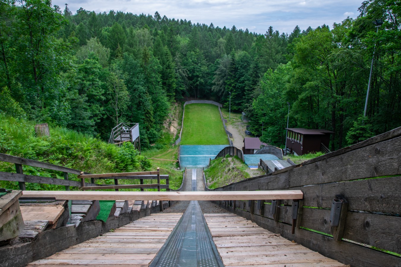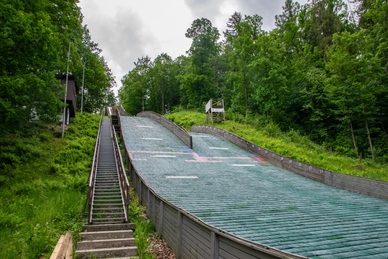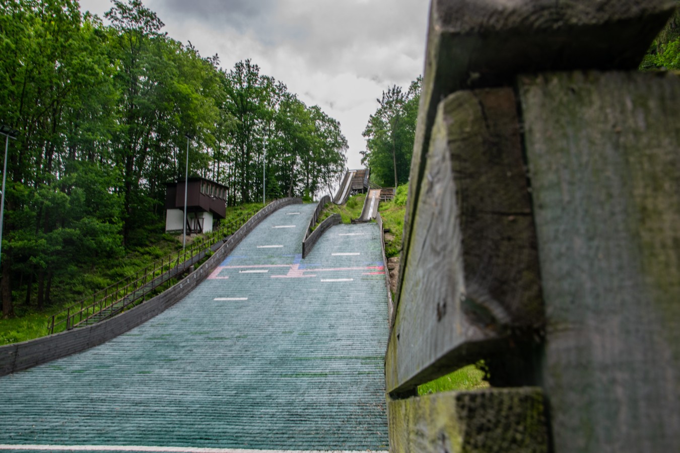Obok zeskoków na kompleksie znajduje się także pięcioosobowa wieża sędziowska.