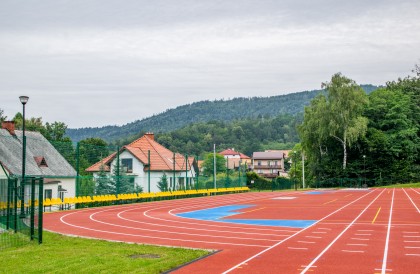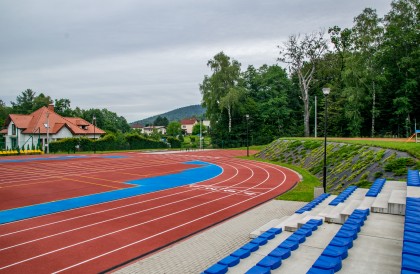 Według licznych obserwatorów to jeden z najbardziej malowniczo położonych stadionów w Polsce. Z wysokości bieżni rozpościera się bowiem piękny widok ma szczyty Beskidu Śląskiego.